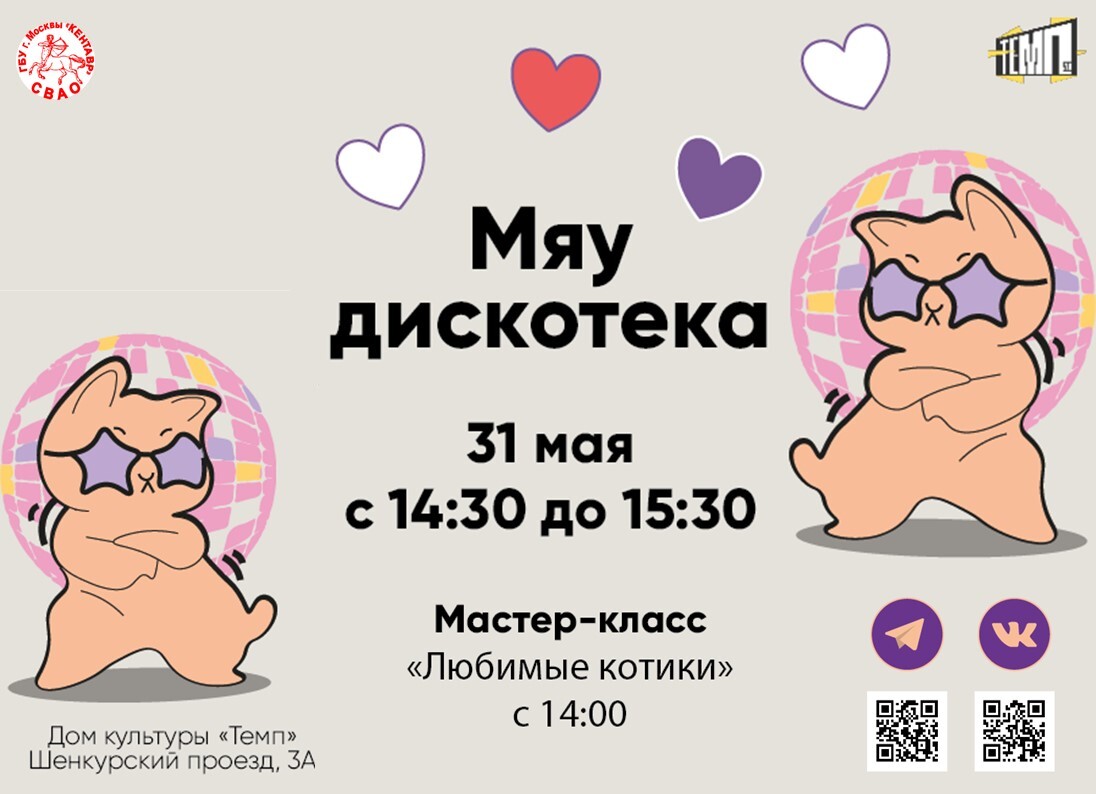 Дом культуры «Темп» провожает сезон с огоньком: с 14:30 отжигаем на Мяу-дискотеке