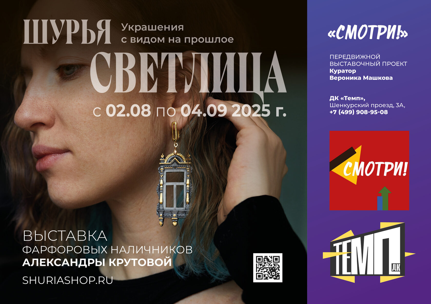 Выставка доступна для просмотра в Ремесленном дворике Дома культуры «Темп» до 4 сентября по рабочим дням с 10 до 18, а далее соединится с выставкой наличников «Окно в Россию» Ивана Хафизова и отправится в путешествие по Москве и стране с Передвижным выставочным проектом «СМОТРИ!» (куратор Вероника Машкова)