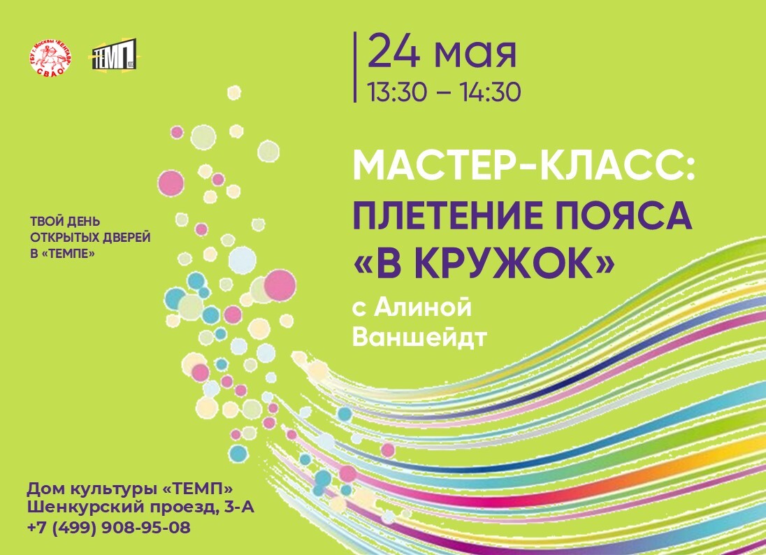 24 мая 13:30–14:30 – мастер-класс «Плетение пояса "в кружок"»